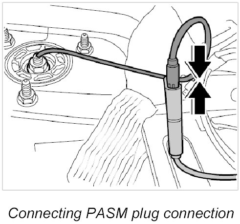 10. Connect plug connections for PASM, front left and right -30 and 31- until they are felt to engage.