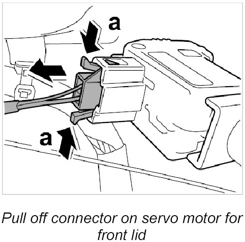 13. Release and pull off connector on servo motor for front lid release -16-.