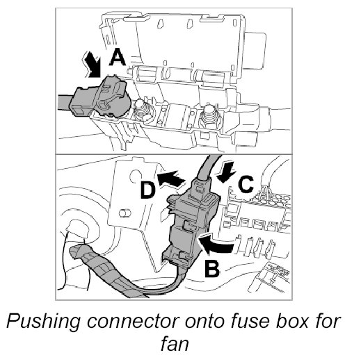 20. Push connector onto fuse box for fan -2-.