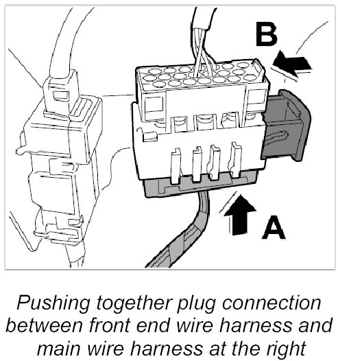 4. Push together plug connection for front-end wire harness to main wire harness, left -20- until it engages securely.