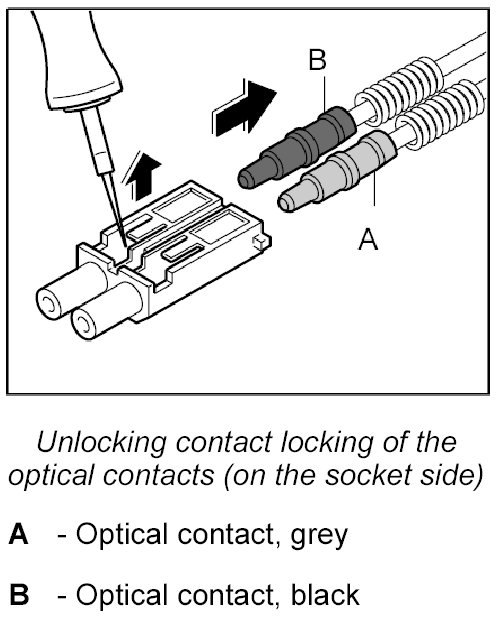 1. Insert the optical contact -A and B- in the connector until it engages audibly.