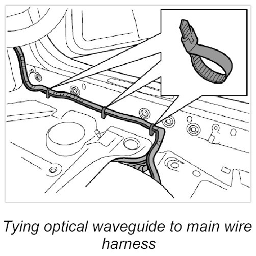 2. Route the new optical waveguide along the main wire harness, guide it through the existing cable ducts and tie it to the main wire harness using tie-wraps.