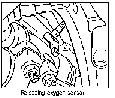 3. Undo oxygen sensor using an open-ended wrench or open ring wrench (a/f 22) and screw it out by hand.