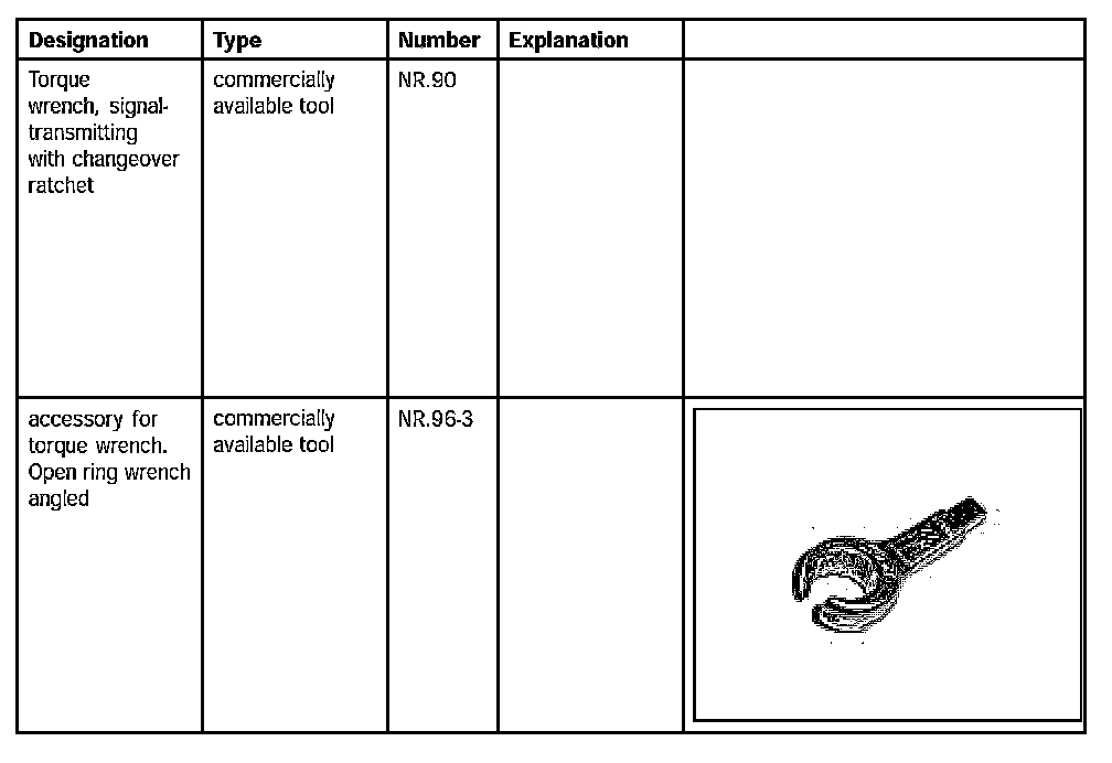 3. Tighten oxygen sensor with commercially available open ring wrench accessory for torque wrench. Open ring wrench angled NR.96-3 and torque wrench Torque wrench, signal-transmitting with change over ratchet NR.90 tighten Tightening torque: 41 ft.lb. ± 3.5 ft.lb.