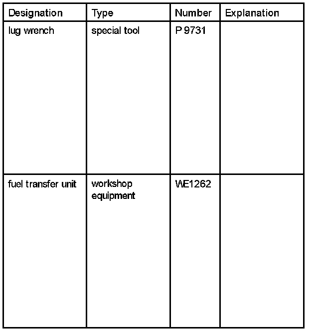 8. Empty the fuel tank. Use the fuel transfer unit WE1262 to do this.