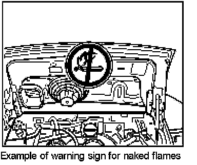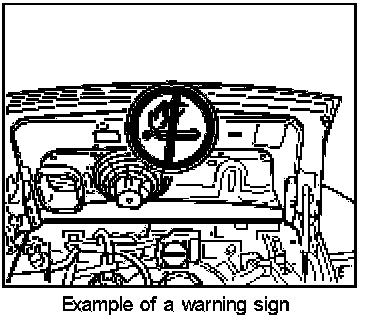 1. Place a warning sign in a clearly visible position in the work area or on the vehicle.