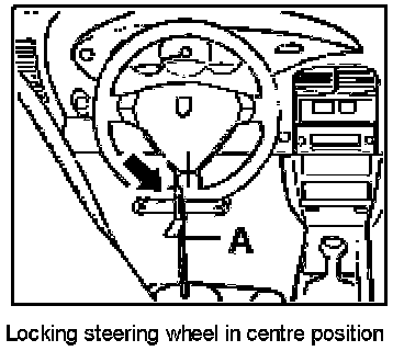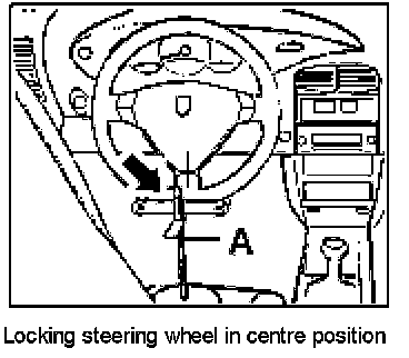 3. Move steering wheel to centre position (front wheels straight ahead) and lock it with the steering-wheel holder -A-.
