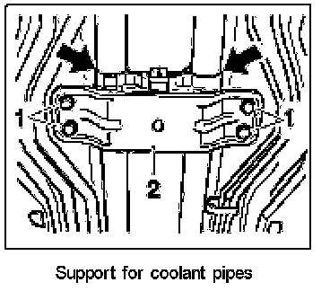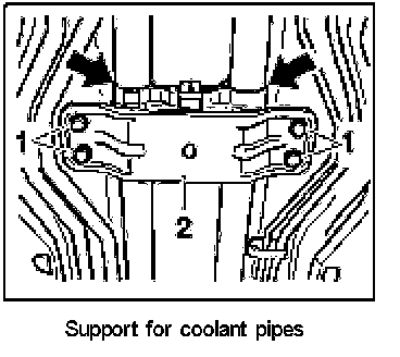 6. Fit coolant pipes in centre tunnel. Secure sheetmetal holder. Tightening torque: 65 (48 ft.lb.) Nm