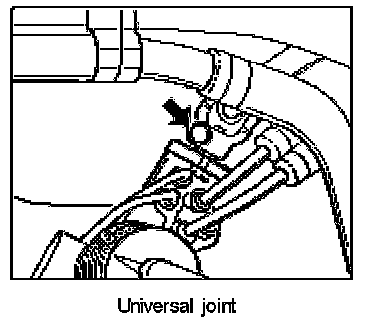 15. Loosen universal joint (steering shaft) at steering gear -Arrow-. To do this, take out the clamping screw and slide the joint upwards.