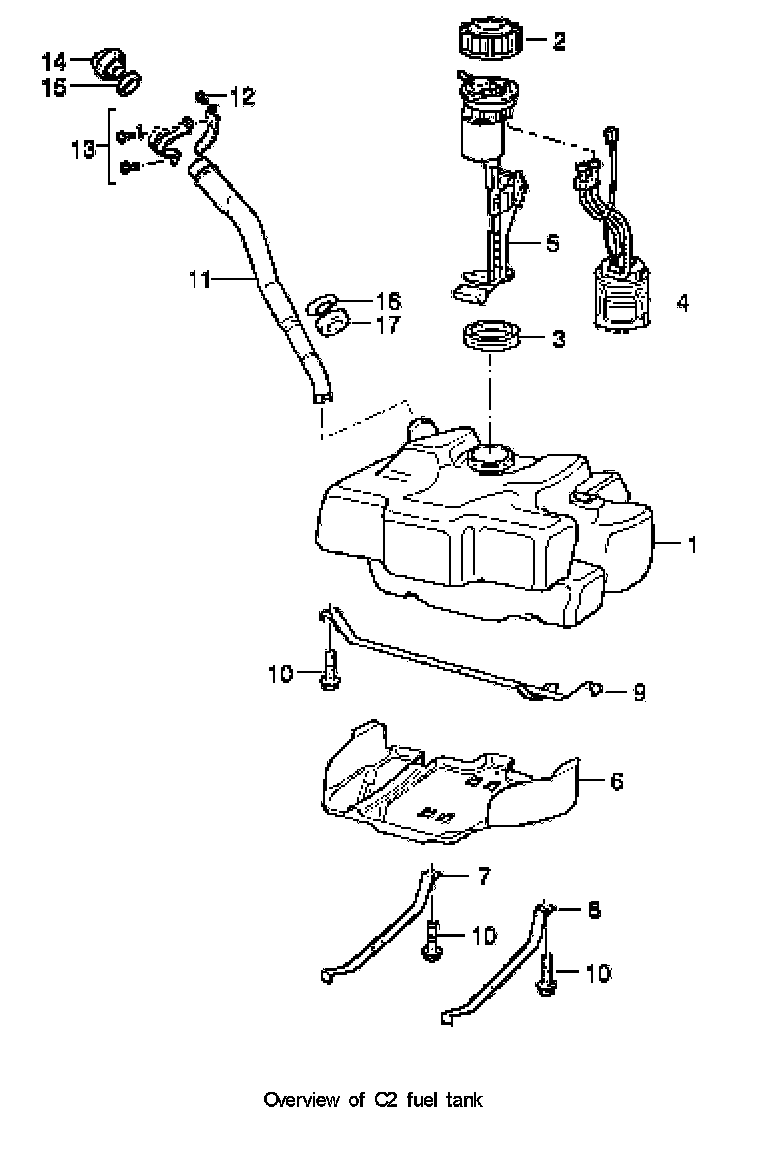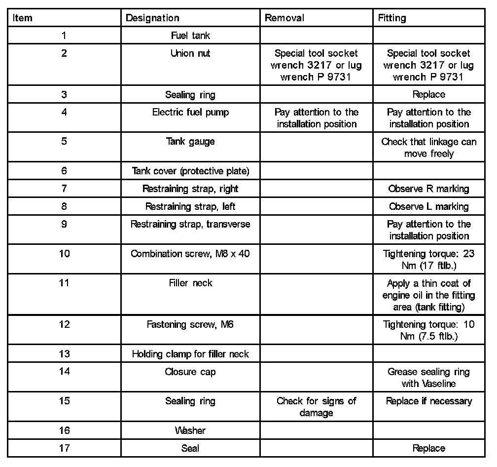 - Be particularly careful with the fuel-level sensor flange when levering out or fitting the fuel tank.