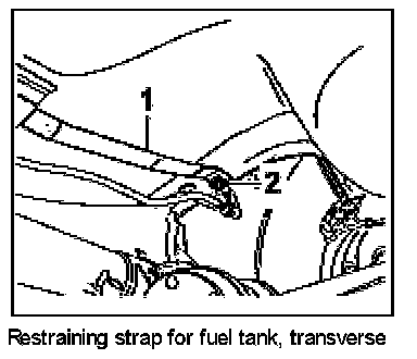 2. Place transverse restraining strap at the correct position on the tank and secure with two M8 screws. Tightening torque: 23 (17 ft.lb.) Nm