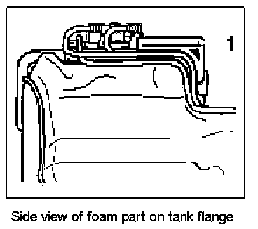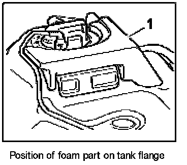 1. Stick foam part -1- to the fuel tank flange if necessary.