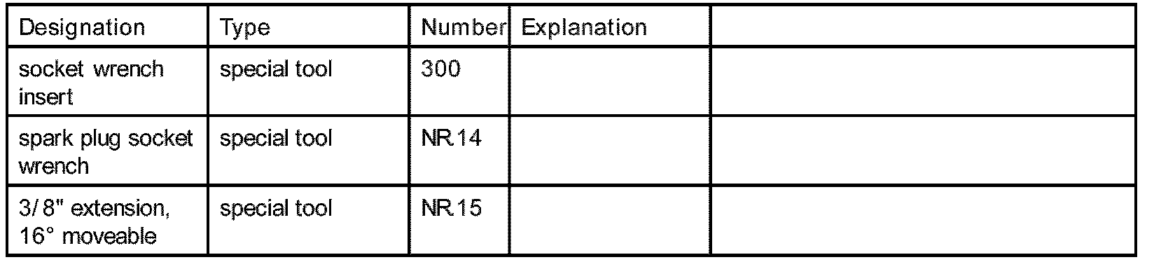 - Only use the approved tool spark plug socket wrench NR.14 and 3/8 inch extension, 16 degree moveable NR.15.