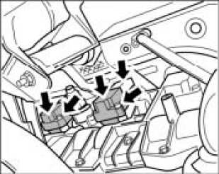 2. Unplug cable plug for the ignition coils. To do this, slide the rubber grommets upward first. Press locking tabs on the respective ignition coil and pull off the individual plugs. In the interest of better accessibility, unplug the cable plugs for the solenoid hydraulic valves.