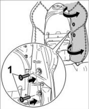 4. Lift the appropriate loosened side bolster and tighten the two fastening screws -1-. Tightening torque 9.7 Nm (7.5 ftlb)