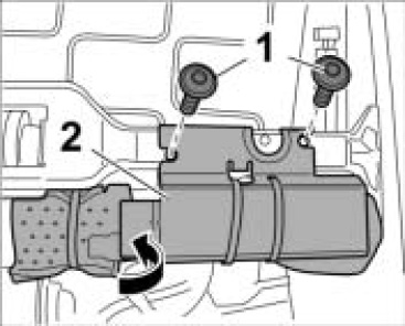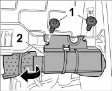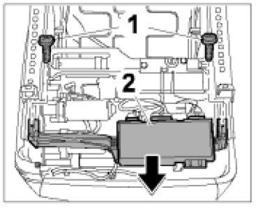 1. Unscrew the two fastening screws -1- and remove control unit for memory seat adjustment together with the support -2- from the seat frame.