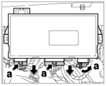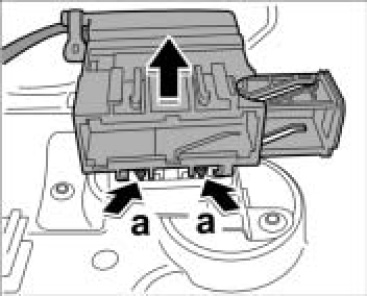 4. Release connector socket -arrows a- and pull out of holder.
