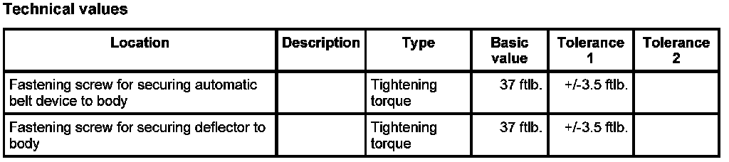 2. Secure automatic belt device -4- with the fastening screw -3-. Tightening torque: Tightening torque: 37 ftlb. ± 3.5 ftlb.