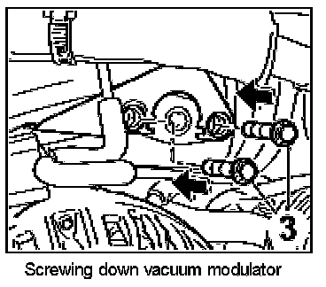 2. Unscrew the two fastening screws -3- for the vacuum modulator.