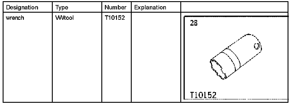 2. Position ignition switch in the instrument panel from below. Position union nut, re-adjust switch and tighten union nut using wrench T10152. Tightening torque: 1.1 ft.lb.