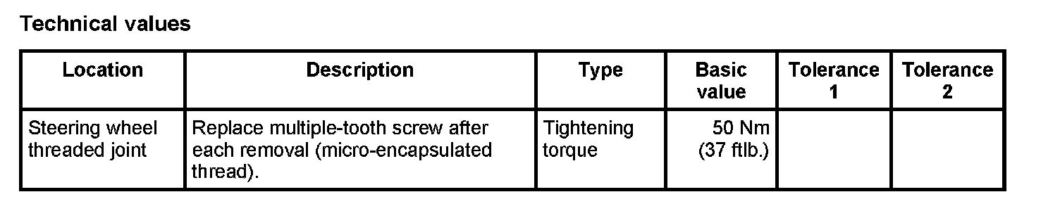 ^ The steering wheel is made of magnesium alloy. The tightening torques must be strictly observed.