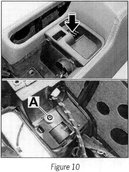 3.5 Press insert for locking mechanism down --> Figure 10 -arrow- until it engages in the center console.
