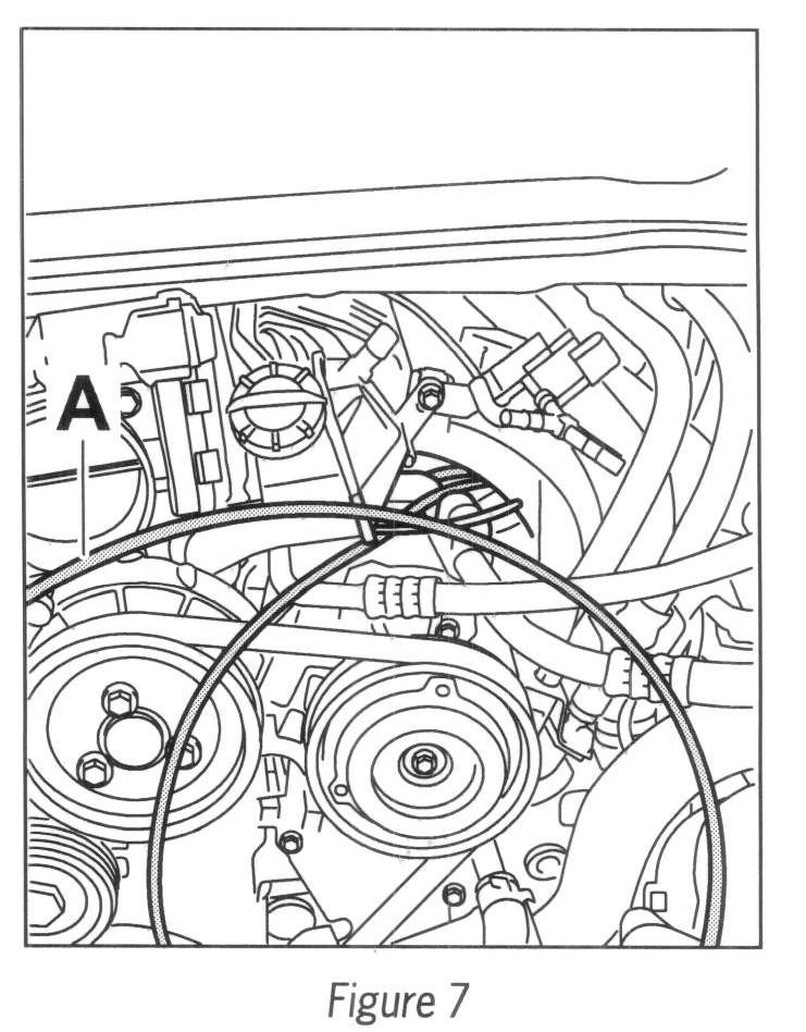 1.5 Clip hose clip (999.591.746.02) in at the top of both rear muffler holders at the engine side (right side of engine [cylinder bank 4-6], see --> Figure 5-A-).