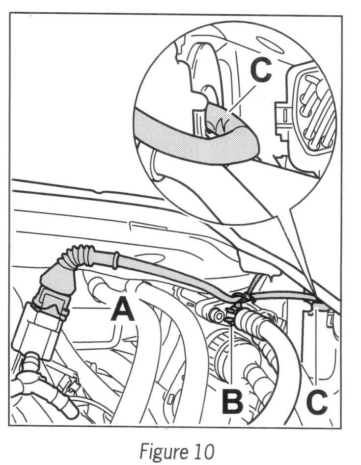 3.4 Secure auxiliary lines that are hanging down to the rear muffler vacuum lines with adhesive tape, for example.