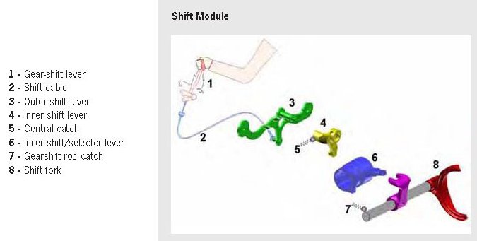 A shift throw reduction of approx. 15% has been achieved on the new 911 Carrera/S models while retaining the same ergonomic characteristics by moving the deflection point on the shift lever (see Synchronization). On top of this play in the shift module under the shift lever has been reduced, resulting in a more precise gear shifting gate.