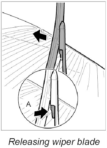 1. Raise wiper arm and release and disengage wiper blade -A-.
