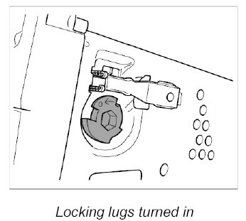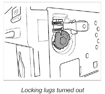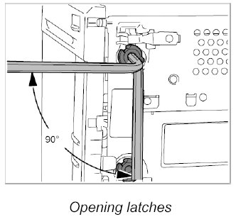 3. Check that the locking lugs on the PCM unit are turned out. Carefully press out the latches using a hexagon-socket wrench by turning them 90 degrees clockwise if necessary.
