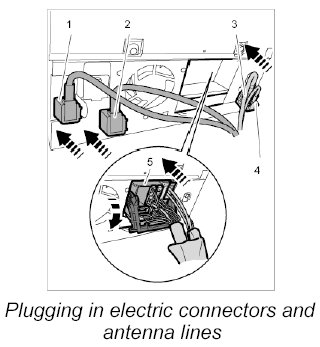 2. Connect electric plug connections and antenna connectors on the back of the PCM unit until the connectors engage securely.