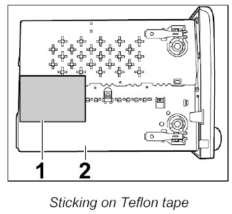 1.7. Stick Teflon tape -1- on the top of the PCM housing -2-.