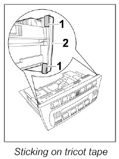 2.2. Stick tricot tape -1- around the four spacers for the air-conditioning system regulator -2-.