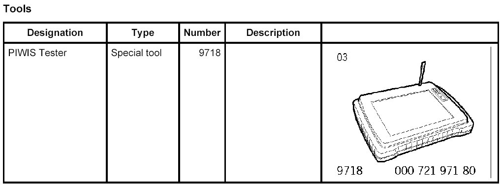 - The PIWIS Tester 9718 instructions take precedence since the description may be different. This may be due to more recent software versions.