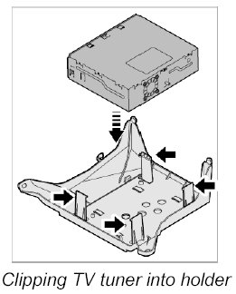 1. Press the TV tuner into the four lugs until all four lugs on the TV tuner housing engage securely.