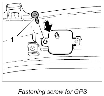 2. Unscrew the fastening screw -1- and pull out the GPS antenna out of the cowl panel cover.