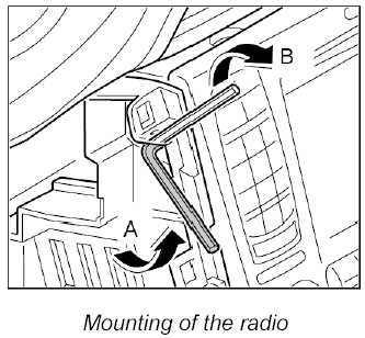 2. Check that the locking tabs on the radio are out, opening the locking mechanism with an Allen key if necessary.