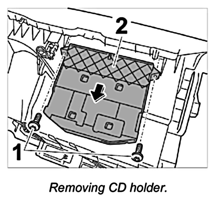 1. Unscrew fastening screws -1- and remove CD holder -2-.