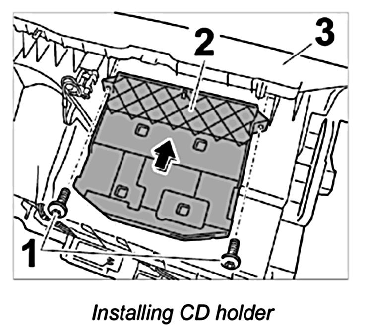 1. Position CD holder -2- at glove compartment -3- and secure using the fastening screws -1-.