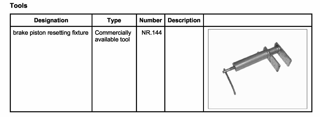 2. Push the brake pistons back to their original position using the brake piston resetting fixture NR.144 if necessary.