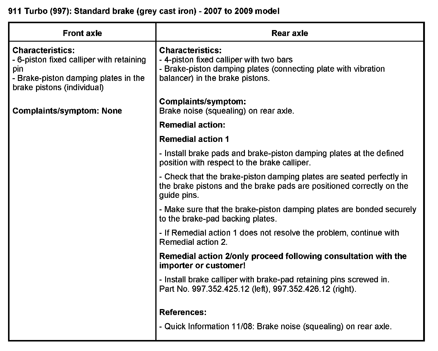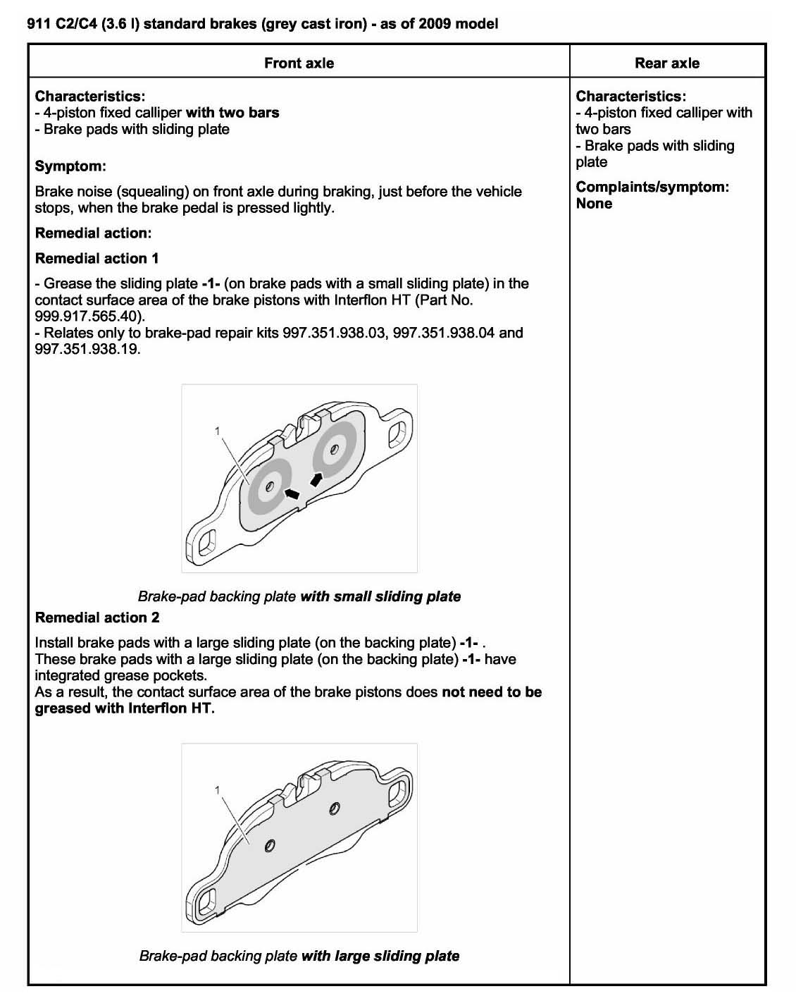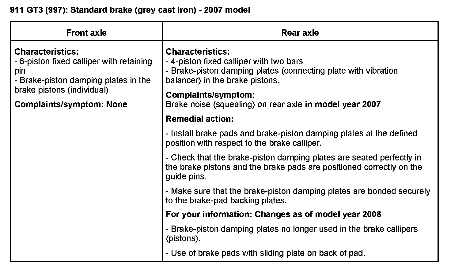 General recommendation in the event of a complaint: Install new brake pads (current spare parts).