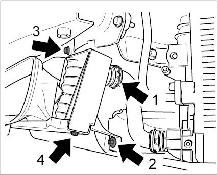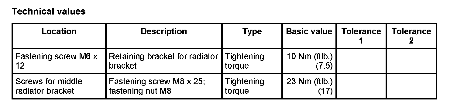 3. Tighten all fastening screws and fastening nuts on radiator bracket -> Tightening torque: 23 Nm (ftlb.) (17).