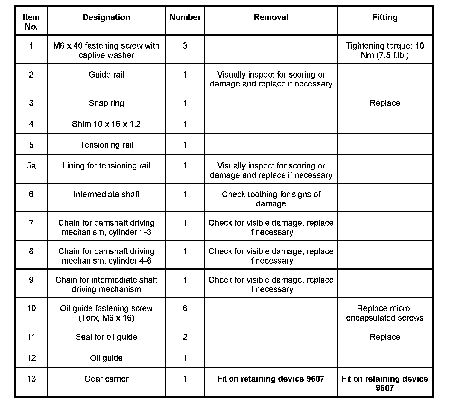 1. Fit oil guide with new seals. Tighten six new M6 x 16 (micro-encapsulated) Torx screws. -> Tightening torque: 10 Nm (7.5 ftlb.)