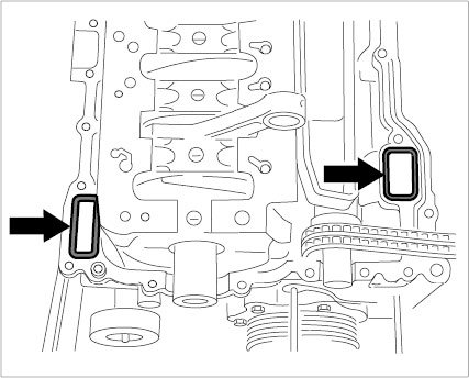 6. Check dowel sleeves to ensure that they are seated correctly or insert two new dowel sleeves in crankcase -Arrows-.