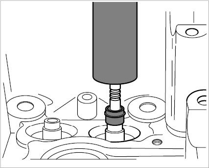 2. Press valve-stem seal with the assembly driver 9606 up to the stop on the valve stem. Take off tool and assembly sleeve.
