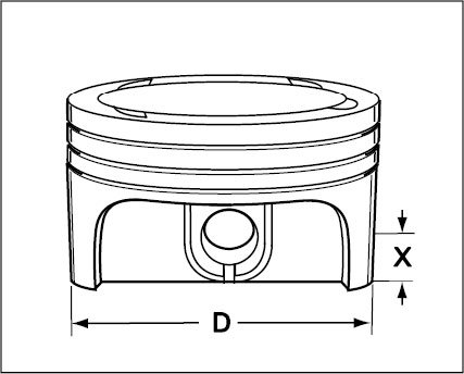 2. Check the piston diameter -D- at the prescribed measuring point on the piston shank using an outside micrometer.