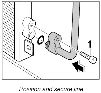 1. Carefully push the lines into the condensers and screw tight with the fastening screws. - Tightening torque: 14 Nm (10.5 ft-lb.)