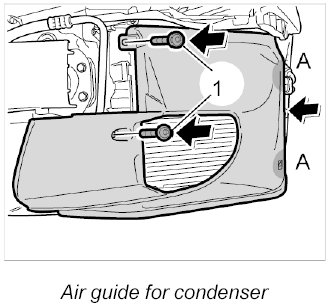 2. Pull the air guide forward and disengage it at the condenser -A-.