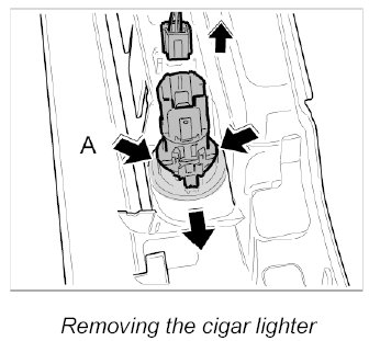 2. Press together the locks -A- and push out the cigar lighter out of the center console.